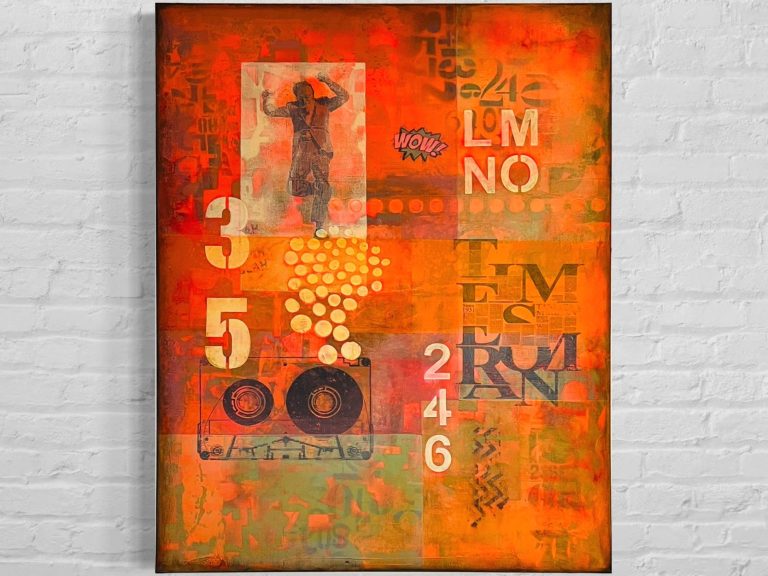 Mixed-Media-Kunst & Acrylmalerei auf Leinwand, Holz und Papier.